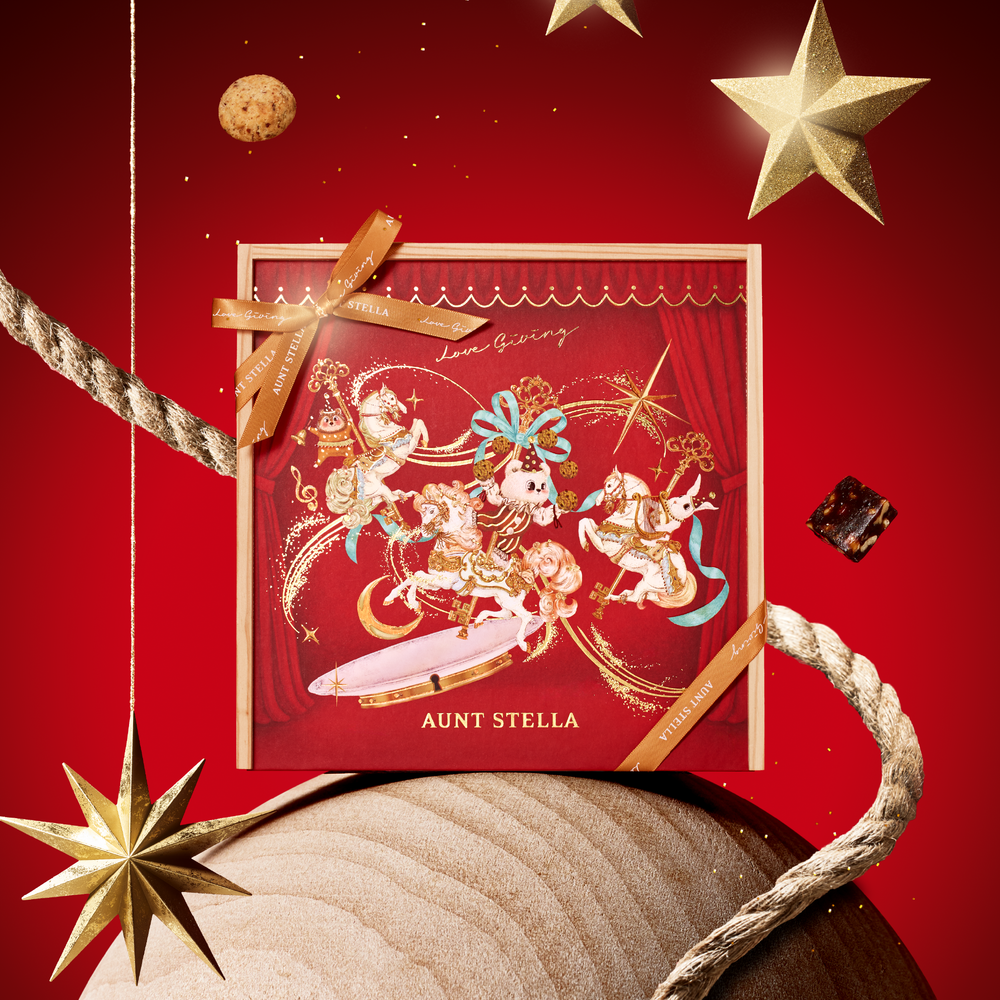Aunt Stella的胡桃鉗⼤軍整齊列隊,懷抱剛出爐的⾦⿈餅乾,還有小熊Juniper,一同守候著節慶的溫暖與驚喜。