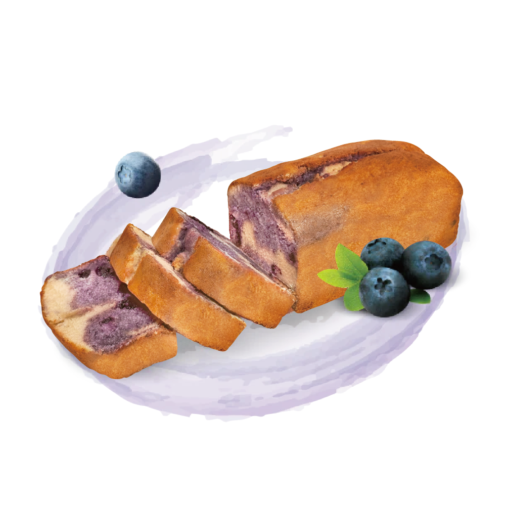 嚴選法國進口藍莓果泥,手工採收野生藍莓,帶有紅酒色調及自然莓果芬香,最後再以新鮮檸檬汁和藍莓果粒提亮蛋糕體的香氣及酸度,經細緻打發使蛋糕溫潤蓬鬆具嚼勁。