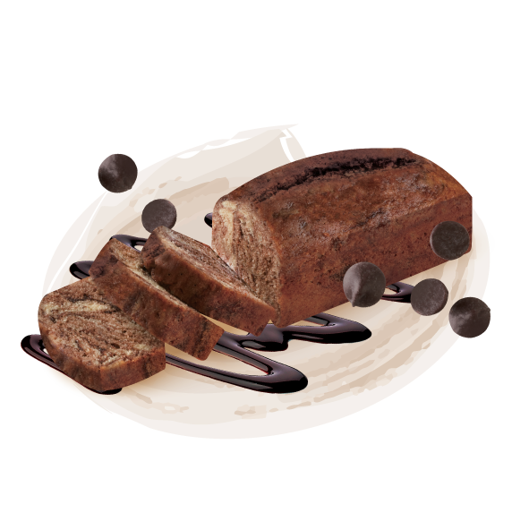 精緻調配的可可麵糊與醇香牛奶麵糊交織出迷人的大理石紋路,濃郁的可可香氣和雞蛋奶香甜蜜融合揉合於口中。