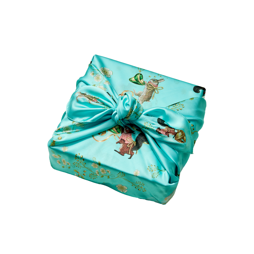 金色陽光灑落,正是端午時節中午的陽光。詩特莉日式經典風呂敷禮盒,絲質布巾呈現出盛夏的金光,搭配燙金細節,贈禮質感滿分。
