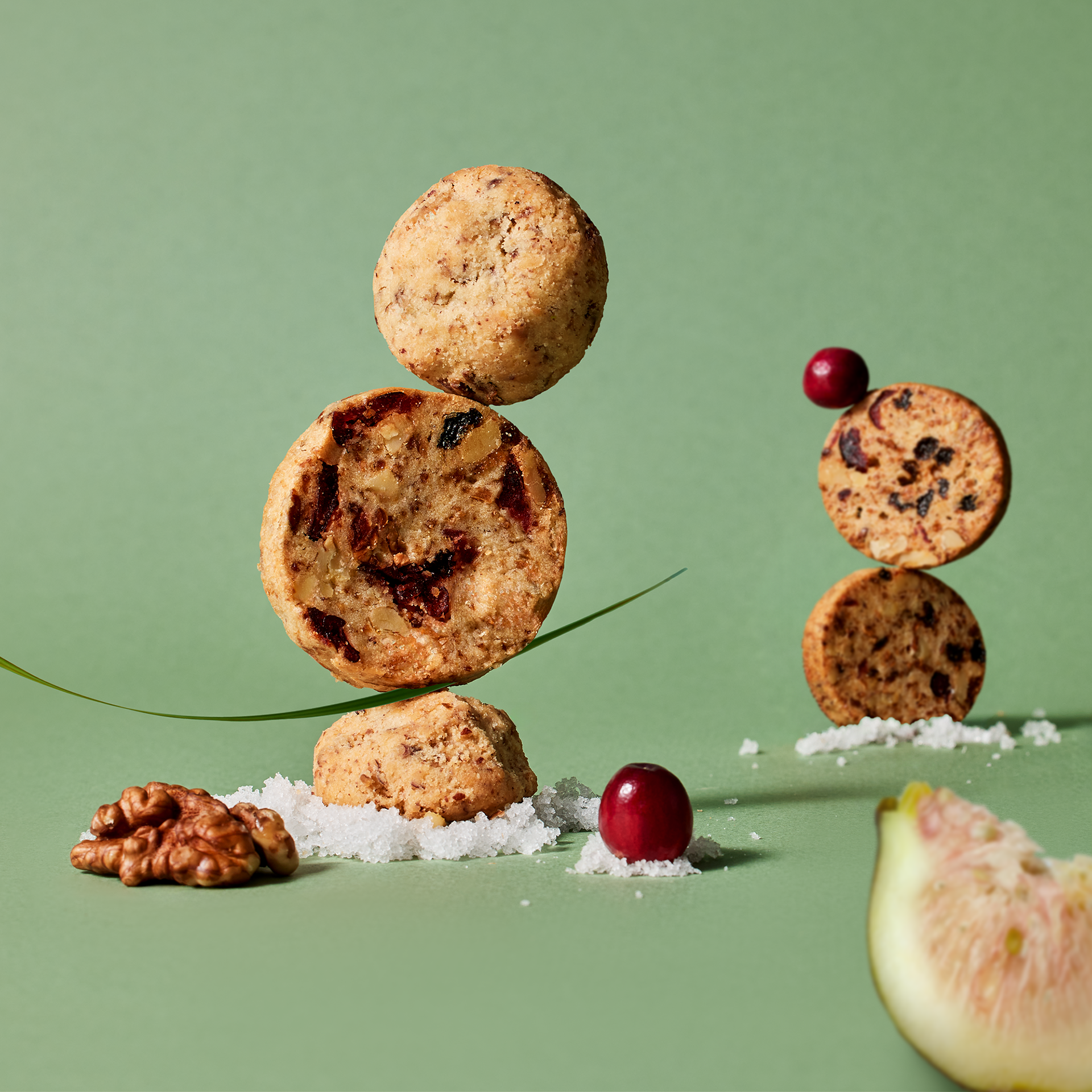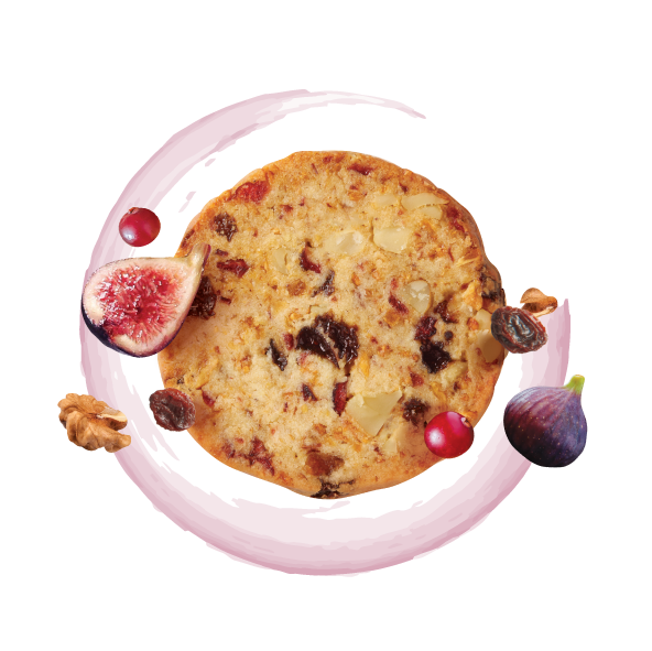 選用雪莉酒與檸檬汁調和麵團,加入無花果、小紅莓、葡萄乾與核桃碎,展現酸甜果香與堅果醇味。