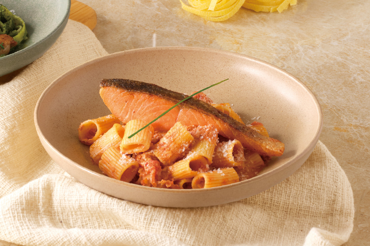 最後輕輕撒上起司,隨熱氣緩緩融化,為整體風味添上一抹濃郁滑順的鹹香收尾,堆疊出層次豐富而迷人的義式風味